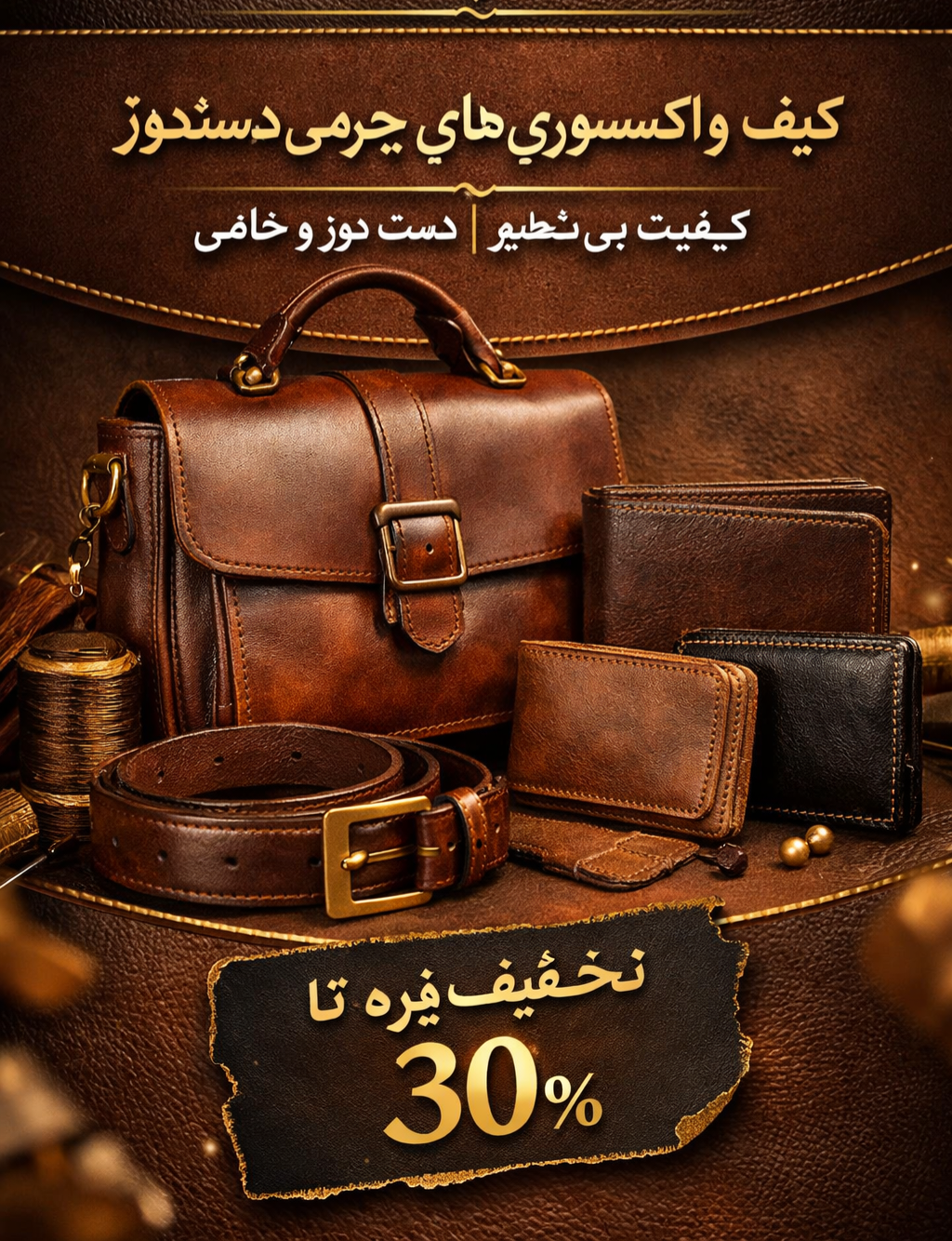 تمام محصولات این فروشگاه از چرم های طبیعی و برند مطرح و کاملا دستدوز میباشد