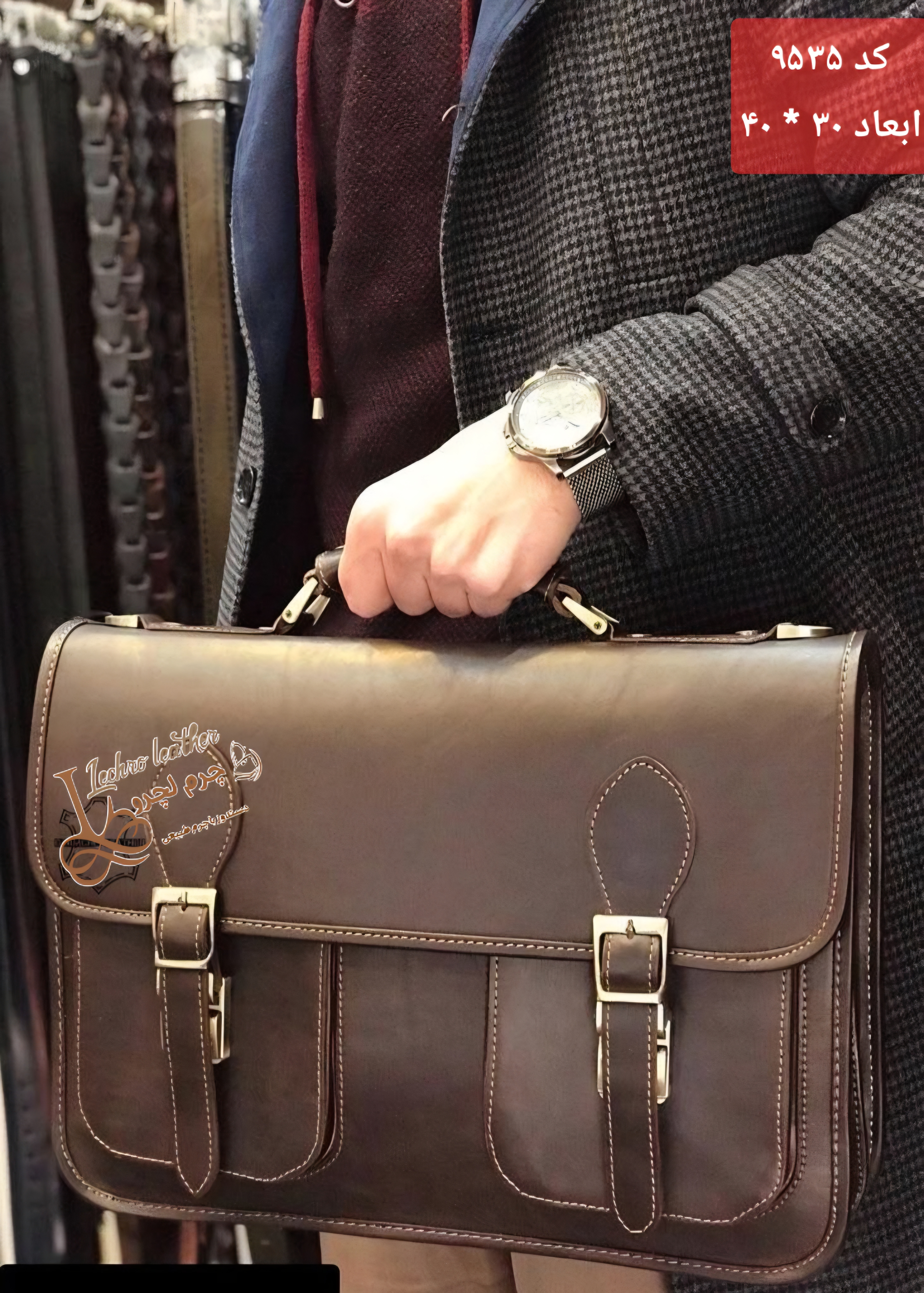 کیف دیپلمات اداری مردانه چرم طبیعی دستدوز کد ۹۵۳۵