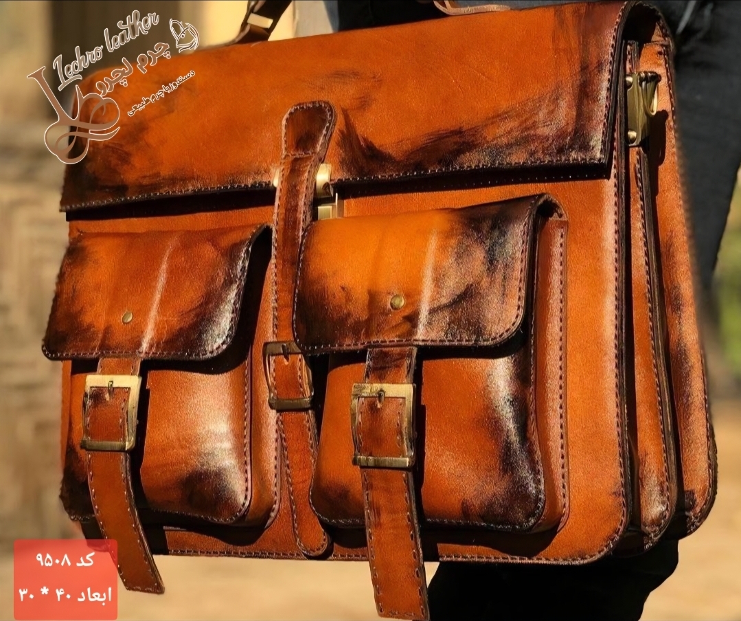 کیف دیپلمات اداری چرم طبیعی و دستدوز کد ۹۵۰۸