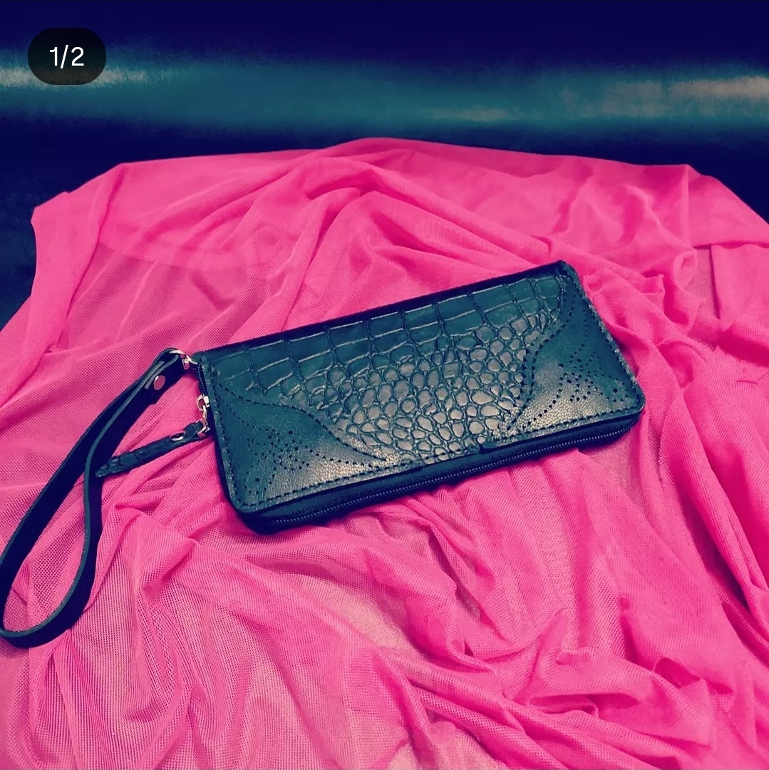 کیف پول و گوشی دور زیپ چرم طبیعی دستدوز کد ۱۰۱۲