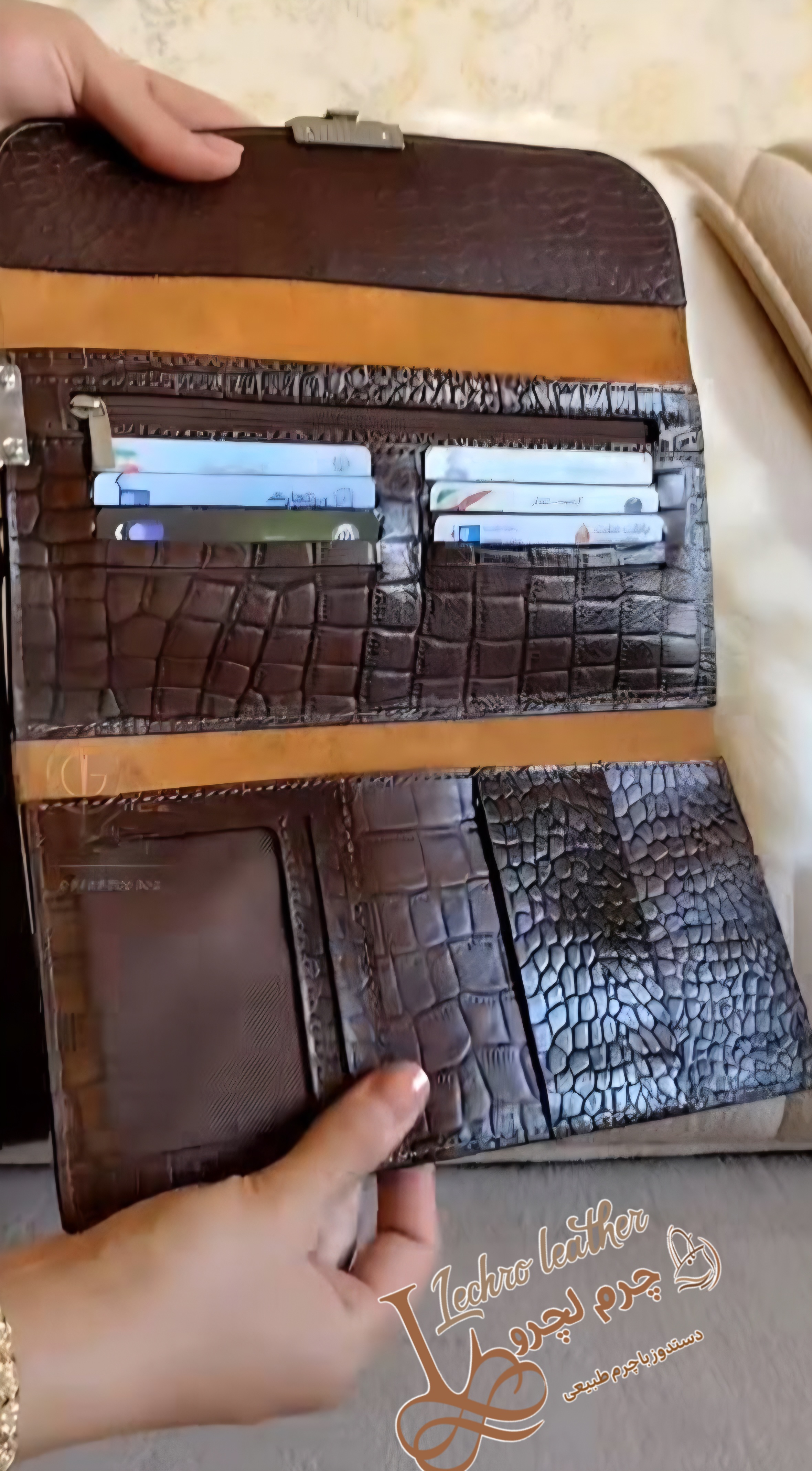 کیف پول و گوشی چرم طبیعی دستدوز کد ۹۷۹۷