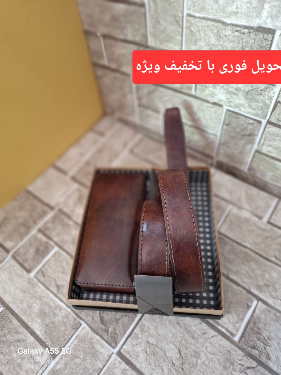 ست کیف پول کیهان و کمربند چرم طبیعی دستدوز اماده تحویل