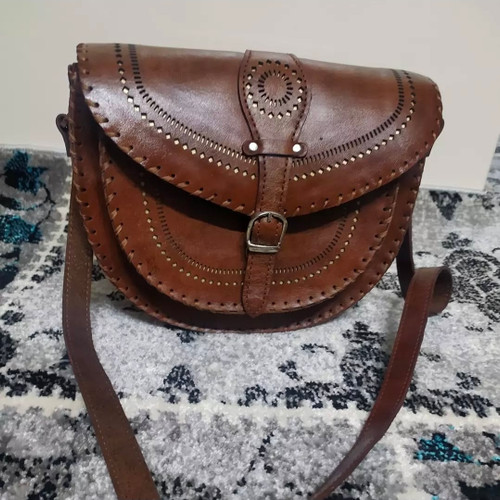 کیف دوشی زنانه.اسلیمی چرم طبیعی و دستدوز