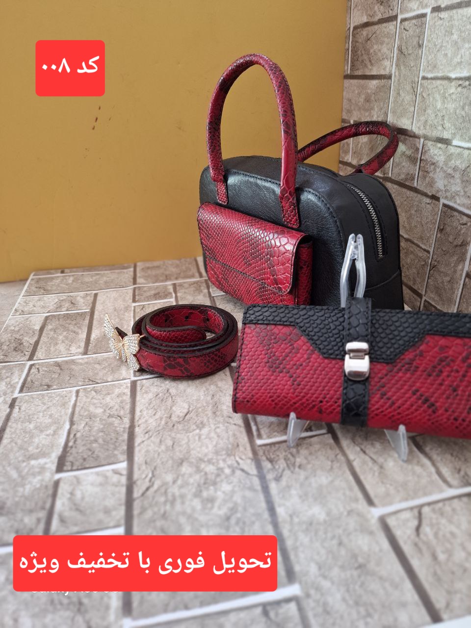 ست کیف دوشی .کیف پول .و کمربند چرم طبیعی دوشی زنانه دستدوز کد ۰۱۲ آماده تحویل