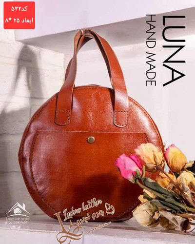 کیف دستی گرد زنانه چرم طبیعی و دستدوز کد ۱۰۲۰۱