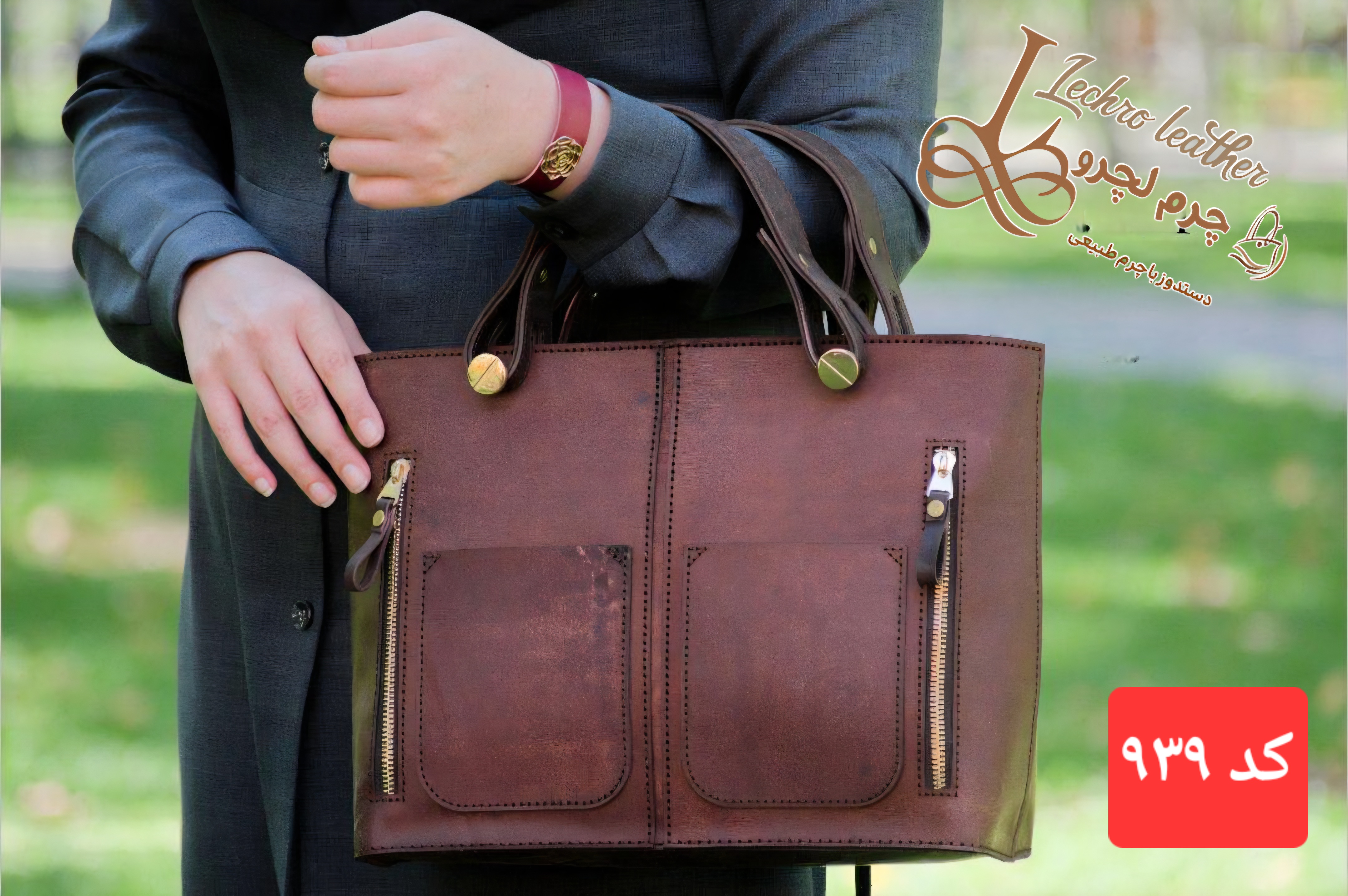 کیف دستی زنانه بزرگ چرم طبیعی و دستدوز کد ۱۰۱۱۱