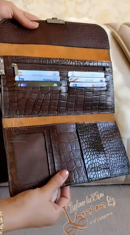 کیف پول زنانه سه لت چرم طبیعی دستدوز کد ۹۷۰۸