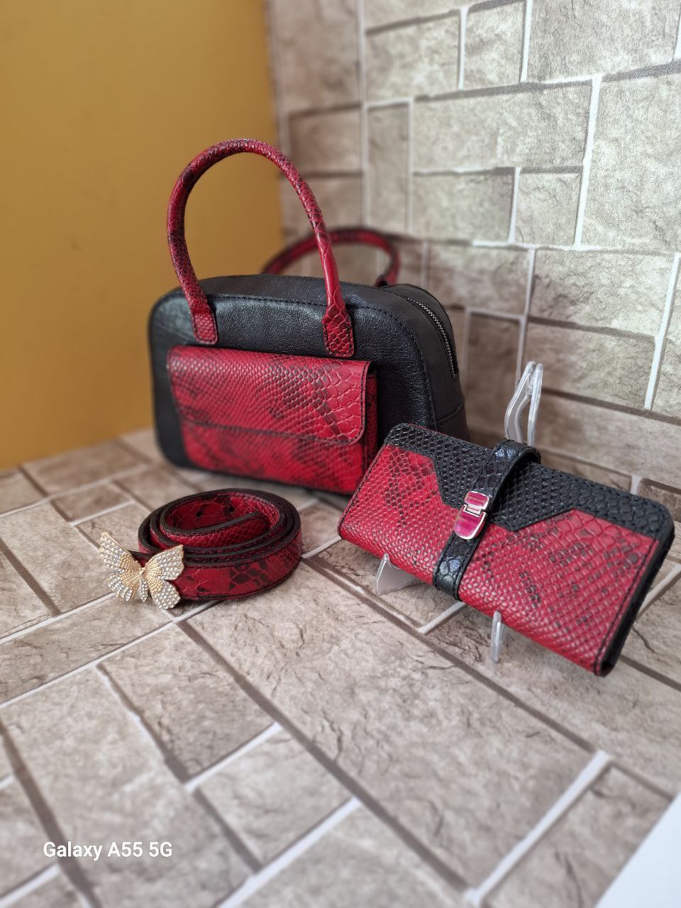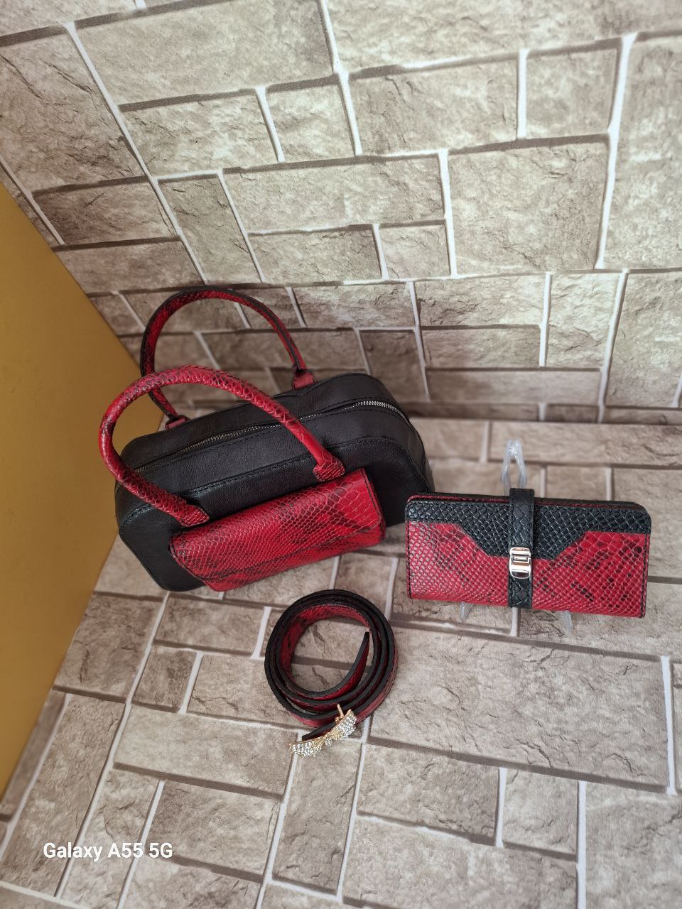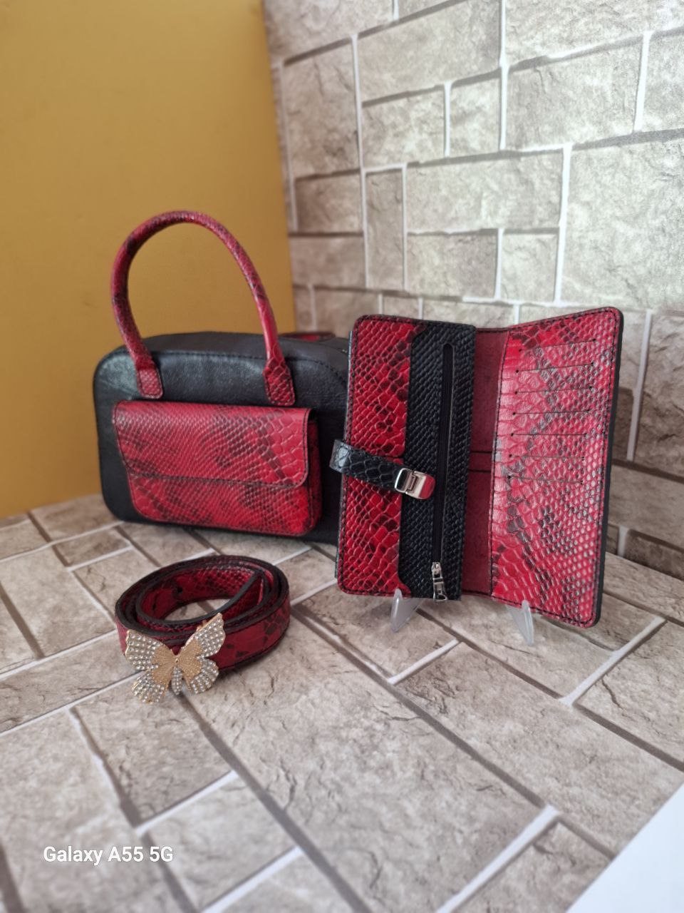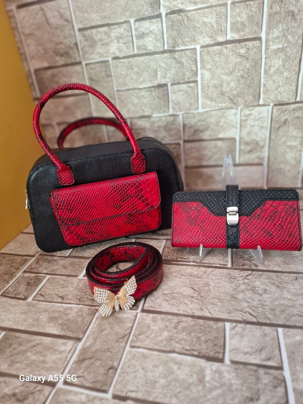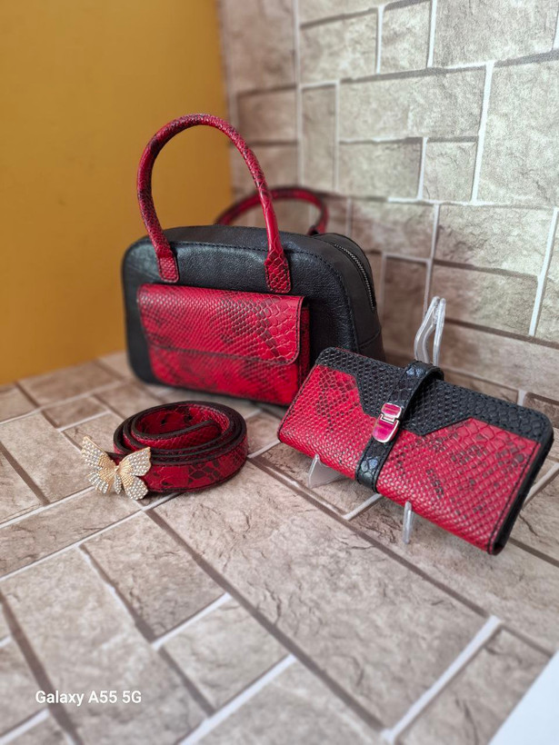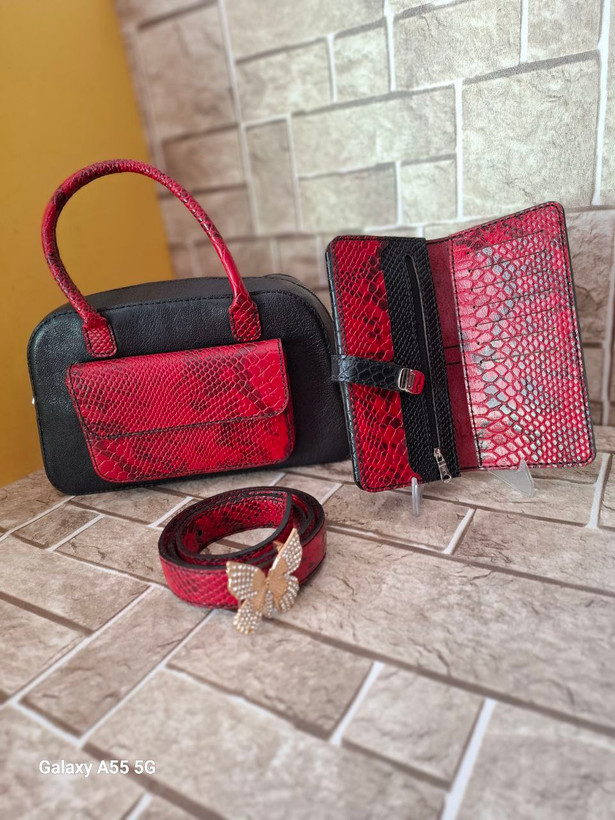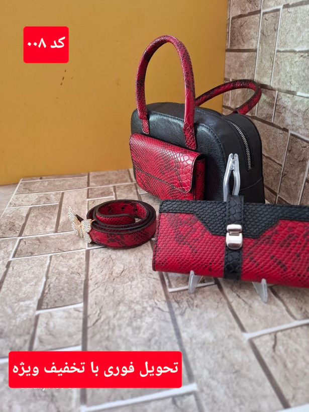 ست کیف دوشی .کیف پول .و کمربند چرم طبیعی دوشی زنانه دستدوز کد ۰۱۲ آماده تحویل