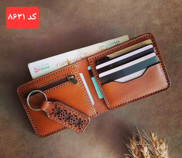 کیف پول جیبی تاشو چرم طبیعی دستدوز کد ۸۶۳۱