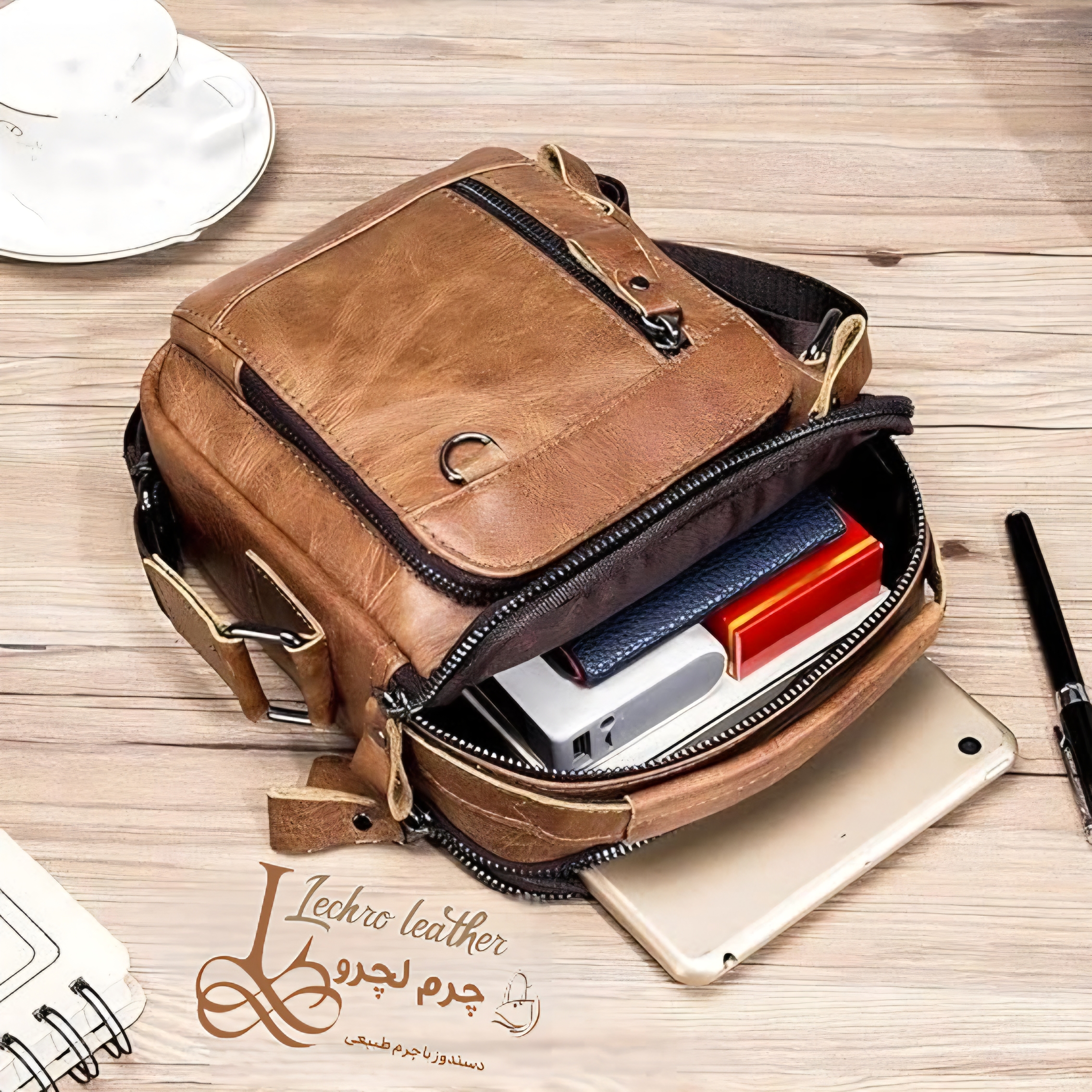 کیف پستچی یه وری چرم طبیعی دستدوز کد ۹۴۵۱